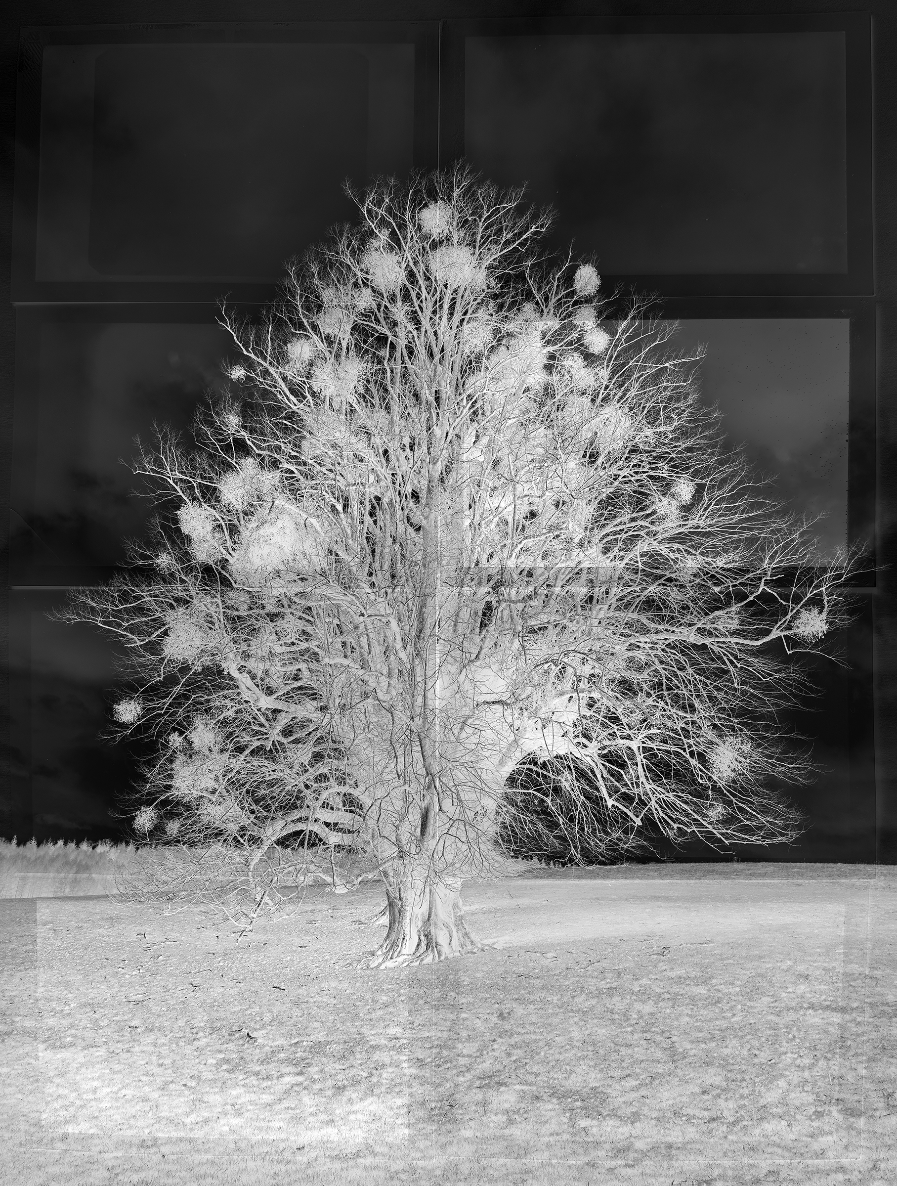 Ancient Boughs #10. Tilia × Europaea & Viscum Album, Common Lime & Mistletoe, West Sussex, Negative.